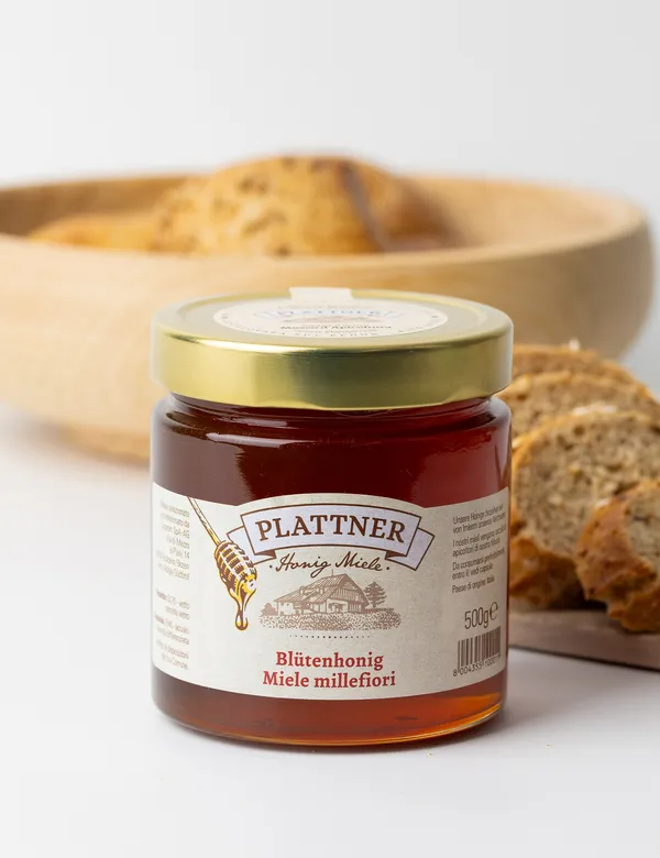 Blütenhonig ist aromatisch im Geschmack, von hellbrauner Farbe und erinnert an Bernstein. Unser Blütenhonig eignet sich hervorragend zum Backen und Süßen. Als Brotaufstrich mit Butter und Schwarzbrot genossen, gehört der Plattner Bienenhof Blütenhonig einfach zum Frühstück dazu.