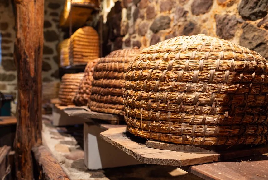 Beginnend in der Antike, kannst du in unserem Museum allerlei Imkereigeräte bestaunen. Bei unseren Führungen erklären wir dir dann z. B., warum früher zunächst Bienenkörbe anstelle der heutigen Bienenstöcke verwendet wurden.