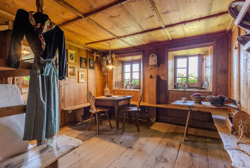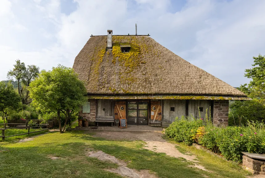 Heute befindet sich unter dem traditionellen Stroh- und Schindeldach unseres Bienenhofes das noch erhaltene Wohnhaus der früheren Bewohnerinnen und nimmt dich mit in vergangene Zeiten. Daneben, im Erdgeschoss, kannst du unseren Honig verkosten und deinen Vorrat für zu Hause auffüllen. Außerdem finden dort im Rahmen der Museumsführung spannende Präsentationen und mehr statt. Eine Etage tiefer, im ehemaligen Stall, geht die Zeitreise weiter. Diesmal mit historischen Imkereigeräten.