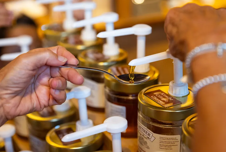 Hier oben auf einer Anhöhe am Ritten liegt der Plattner Bienenhof. Friedlich eingebettet zwischen grünen Wiesen, schattigen Bäumen und einem Teich mit rosa Seerosen, erzählt er still seine Geschichte. Denn auch nachdem Familie Gramm den inzwischen 600 Jahre alten Hof 1987 erworben und 1991 renoviert hat, wurde die Seele des Plattnerhofes erhalten. Mit dem Summen der Bienen als ewigen Herzschlag.