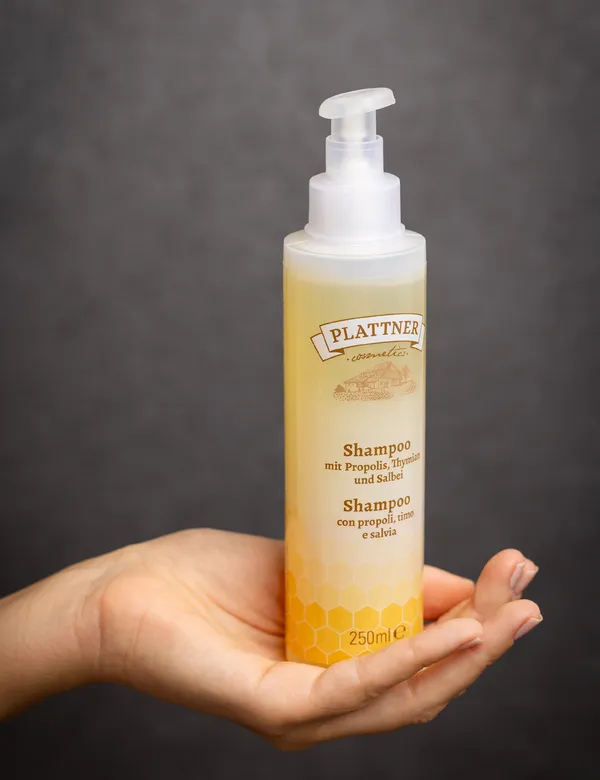 Delicate natural shampoo for strong and healthy hair.Propolis and Alpine herb extracts, such as Swiss pine and mountain pine, thyme and sage have a particularly purifying effect on the scalp. Ideal for greasy hair.
