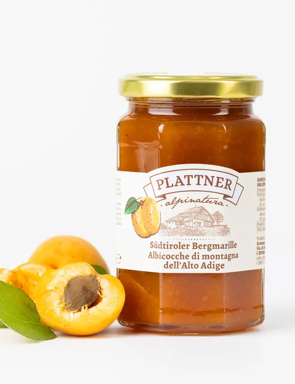 La confettura di albicocche della montagna dell'Alto Adige si distingue per il suo aroma intenso, il gusto naturalmente dolce e l'alta qualità delle albicocche che crescono nelle zone montuose dell'Alto Adige.