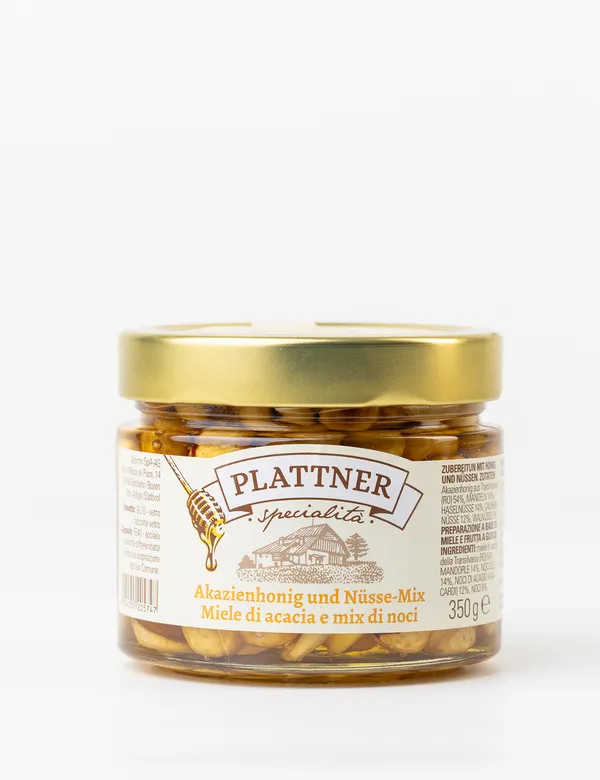 Nocciole, noci, mandorle e anacardi, insieme al delizioso miele di acacia, si uniscono per creare una prelibatezza naturale e di alta qualità. Il delicato aroma delle noci si armonizza perfettamente con questo miele di acacia selezionato, che non risulta mai invadente e colpisce per la sua dolcezza naturale.