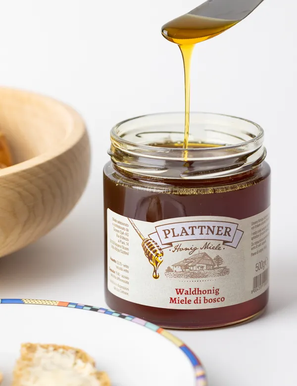 Miele dal colore marrone scuro a moka, dal sapore intenso e con un profumo aromatico, il suo gustoci ricorda il caramello. Prodotto ottenuto dalla melata di piccoli insetti di bosco e nettare di piante del bosco.