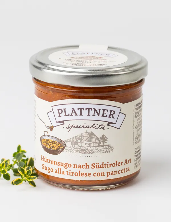 Il nostro "Hüttensugo" alla tirolese è preparato con carne di manzo di alta qualità e pancetta di maiale. Arricchito con pomodori freschi e erbe locali, nasce una salsa saporita e ricca – ideale per la pasta.